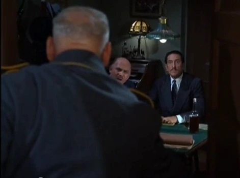 Later in Klink's office, the colonel finishes a phone call with General Burkhalter before announcing that Major Kiegel was arrested for black market activity and any orders he gave are officially revoked. The overjoyed Schultz boldly tries to have a drink from Klink's decanter but is stopped by the Kommandant, who points out that it wouldn't be difficult to paste the transfer orders he just tore up before dismissing Schultz. (The sergeant manages to sneak a drink under Klink's nose anyway).