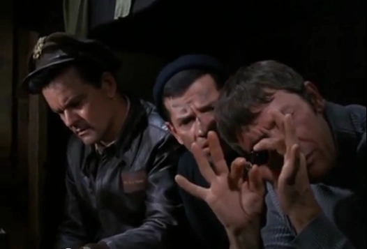 The next day, the Heroes discuss the matter. Carter, Newkirk and LeBeau are all in favour of taking Hegel out before he can do so to them, but Hogan points out that the act would draw too much attention. Kinch soon joins them with London's answer of "are you nuts?" Hogan points out that Hegel likely has their transmission code and is monitoring their broadcast, as such he instructs Kinch to use their emergency code which Hegel doesn't know about, and to ask London for fake diamonds. Hogan tells the Heroes that they will use the fake diamonds to bait Hegel into a trap.