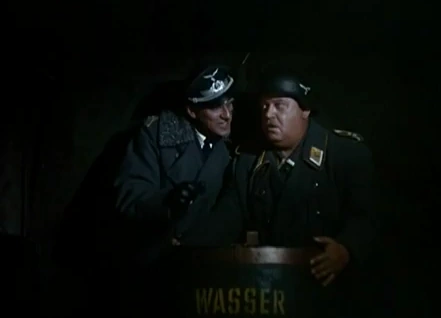 That night, Klink plans to replace the barrel of heavy water with another barrel containing ordinary water. Klink goes to Schultz, who is guarding the truck, and bribes him with the promise of a promotion. Schultz accepts the bribe and goes into the truck with Klink to help him switch the barrels. But the plan is foiled when Captain Mueller appears and, after Schultz is dismissed by Klink, Mueller informs Klink that the water in the barrel is actually heavy water, and it is to be used for atomic experiments. After being informed of this, Klink asks if he would die from drinking the water, and Mueller reply that he would if Berlin finds out about the incident.