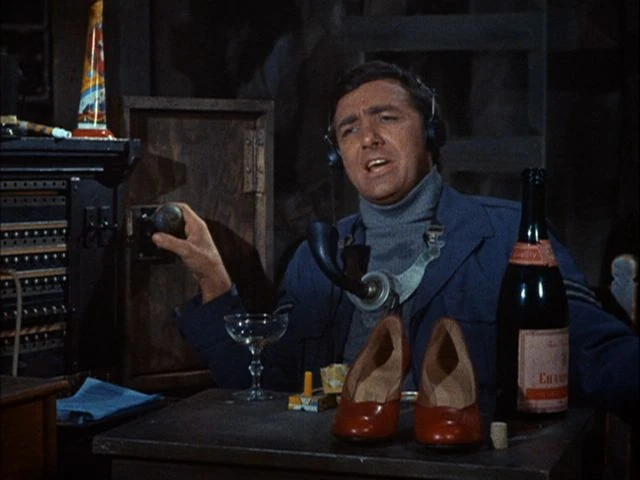 A little later in the tunnels, Hogan gives the Heroes their parts for their grand scheme. Kinch and Thomas are to take control of the radio station in Hammelburg and read a prepared message at 4:55 pm. Newkirk is to intercept Hochstetter's call to Berlin (after being assured by Hogan that Hochstetter will make a phone call) and LeBeau is to plant a fake newspaper on Schultz. Hogan asks if Hilda has been given her part in the plan, to which Kinch replies in the positive. She will be sharing Klink's wine after all and is to turn on Klink's radio just before five o'clock (though she doesn't know the true nature of the request). Kinch also reveals that Hilda has asked for a pound of coffee and six pairs of nylon stockings as payment, prompting Newkirk to declare "ain't love grand?" Satisfied with their knowledge of the plan, the Heroes depart for their various objectives.